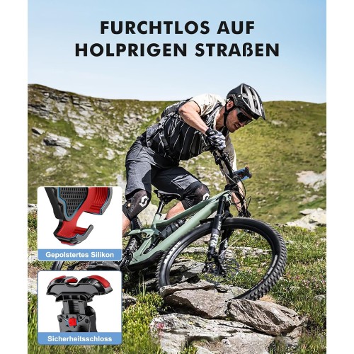 • Gepolstertes Material, zuverlässiger Schutz: Schützen Sie Ihr Telefon vor Stößen und Stürzen mit unserem hochwertigen Silikonmaterial und dem verdickten Design mit vier Ecken, das eine hervorragende Stoßfestigkeit bietet. Verbessern Sie noch heute Ihr Fahrerlebnis und genießen Sie den Komfort und die Sicherheit unserer Handyhalter motorrad.