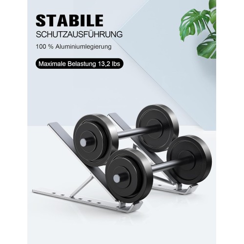 • Robust und vollständiger Schutz: Hergestellt aus hochwertiger 6 mm Aluminium-Legierung und als Dreieck-Struktur entworfen. Kann bis zu 6 kg Gewicht stabil halten. Mit großen Anti-Rutsch-Silikonabdeckungen an 2 erhöhten Haken und der gesamten Oberseite. Kann Ihren Laptop an Ort und Stelle halten und Ihr Gerät maximal vor Kratzern und Verrutschen schützen. Darüber hinaus werden glatte Kanten Ihre Hände nie verletzen.