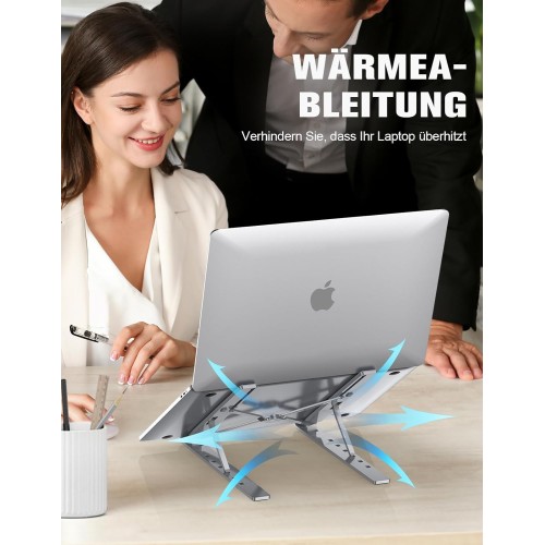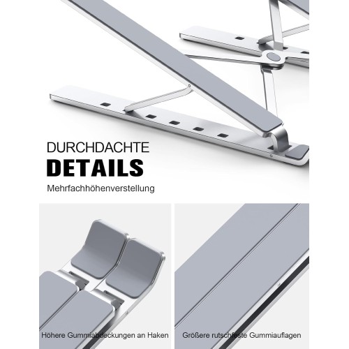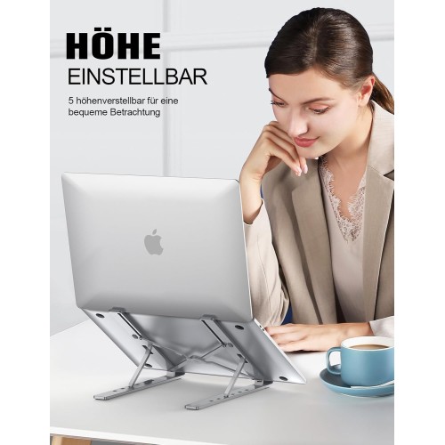 Babacom Laptop Ständer, 5-Stufe Aluminium Laptop Stand, Tragbar Höhenverstellbarer Belüfteter Schreibtisch-Bücherständer Kompatibel mit MacBook Pro Air, und andere 10-15,6 ” Laptops Tablet, Silber