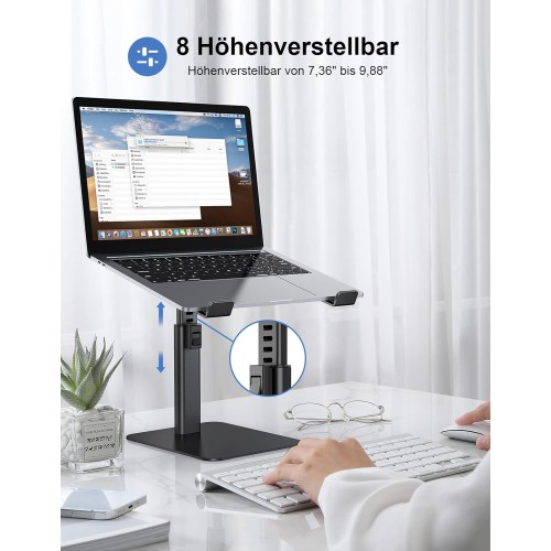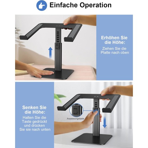 • 【8 Höhenverstellbar】 Die 8 Höhen des Laptop-Bildschirms sind von 7,36" bis 9,88" für die perfekte Augenhöhe frei einstellbar. Die maximale Höhe ist speziell für Personen gedacht, die aufgrund der Beschwerden, die durch langes Sitzen im Büro verursacht werden, in eine stehende Haltung wechseln möchten. Ziehen Sie direkt nach oben, um den laptop ständer anzuheben. Während Sie ihn absenken, müssen Sie die Taste gedrückt halten und die Stange nach unten drücken.