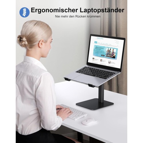 • 【Ergonomisches Design】 Der 15°-Neigungswinkel des notebook ständer wurde wiederholt getestet und verifiziert. Er ist optimal ergonomisch entwickelt für eine sitzende und stehende Haltung. Die Verwendung des Laptops mit dem Ständer hilft, Schulter- und Nackenschmerzen zu reduzieren, indem längeres Verbeugen vermieden und eine gute Arbeitshaltung entwickelt wird.