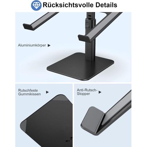 Babacom Laptop Ständer, 8 Höhenverstellbar Aluminium Kühlpads Laptop Stand, Ergonomischer Belüfteter Laptopständer Kompatibel mit MacBook, Air, Pro, Alle 10"-16" Notebooks - Schwarz