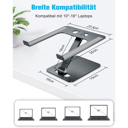 • 【Breit Gerätekompatibel】 Der Laptop Stander passt auf alle Laptops von 10 bis 16 Zoll, wie z.notebooks computers 11 Zoll, 12 Zoll, 13 Zoll, 13.3 Zoll, 14 Zoll, 15 Zoll, 15.4 Zoll, 15.6 Zoll.