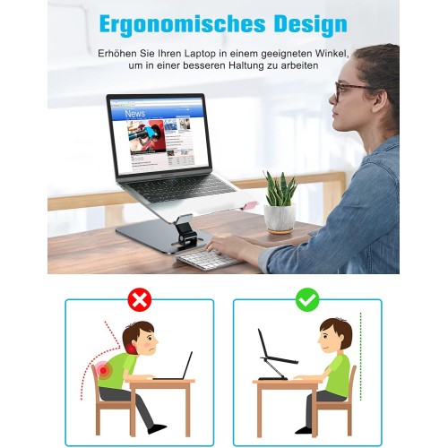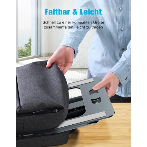 • 【Faltbar & Tragbar】Dieser Laptop Ständer könnte verstellbar sein. Sie können sich in verschiedenen Winkeln neigen und je nach Ihren Bedürfnissen höher oder niedriger stellen, um eine gesunde Körperhaltung beizubehalten. Darüber hinaus ist es zur einfachen Aufbewahrung zusammenklappbar und leicht zu transportieren.