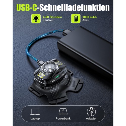 • [Wiederaufladbar & IPX4-wasserdicht] Dank des 1800-mAh-Akkus und der USB-C-Ladefunktion (Kabel im Lieferumfang enthalten) lädt sich diese licht joggen schnell vollständig auf und bietet eine lange Laufzeit für den Outdoor-Einsatz. Dank der IPX4-Wasserdichtigkeit widersteht sie Regen, Schweiß und Spritzern – zuverlässig bei Schnee, Regen oder Nebel und ist somit ein zuverlässiger Begleiter für Outdoor-Fans