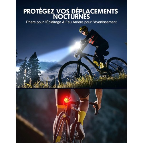 • [IP65 Étanche - Prêt pour Les Conditions Météorologiques Difficiles] Classés étanches IP65, notre lumiere velo avant et arriere résistent à l'infiltration d'eau, protégeant ainsi le circuit imprimé de l'humidité. Ils fonctionnent de manière fiable par temps pluvieux ou lors de tempêtes, offrant une tranquillité d'esprit pendant vos aventures à vélo. Grâce à une construction solide et une excellente résistance aux chocs, ils résistent aux manipulations difficiles.